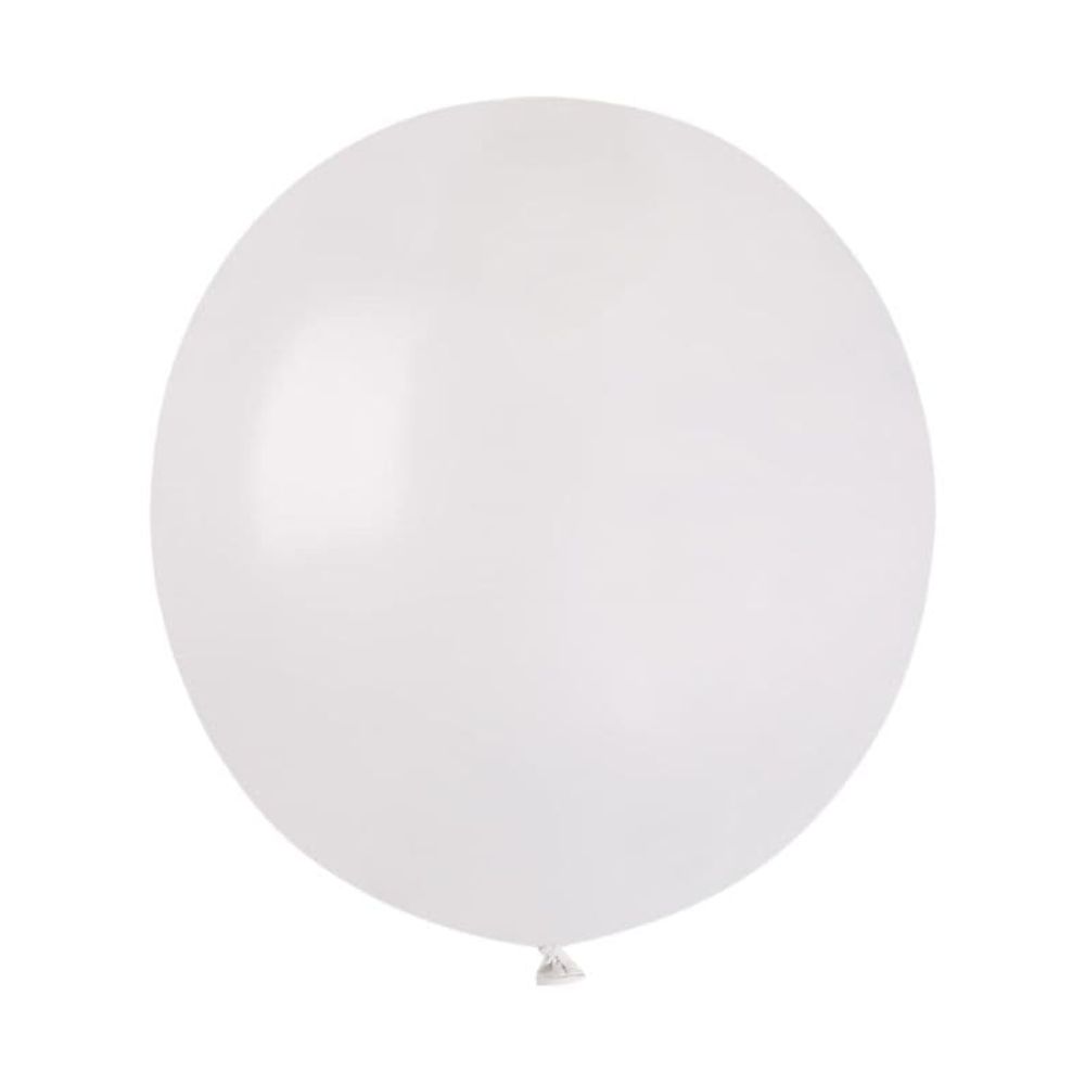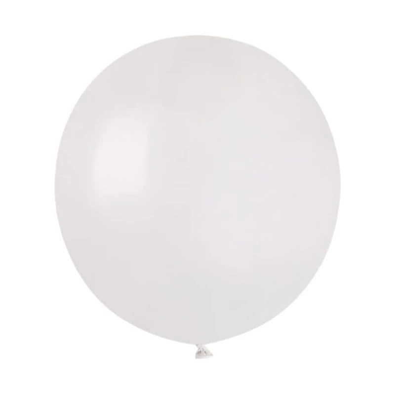 Duży balon biały pastelowy ma średnicę ok. 48 cm. Cena dotyczy 1 sztuki. Balon może być napełniony powietrzem lub helem. Numer koloru: #001.