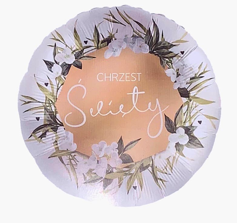 Neutralnym i estetycznym wyborem na Chrzest Święty twojego maluszka będzie balon foliowy "Chrzest Święty" w kolorze bieli z dodatkiem motywu roślinnego oraz złota. Ze względu na swój unikalny wygląd, będzie zdecydowanie przyciągał uwagę gości oraz stanowił część oryginalnej dekoracji.