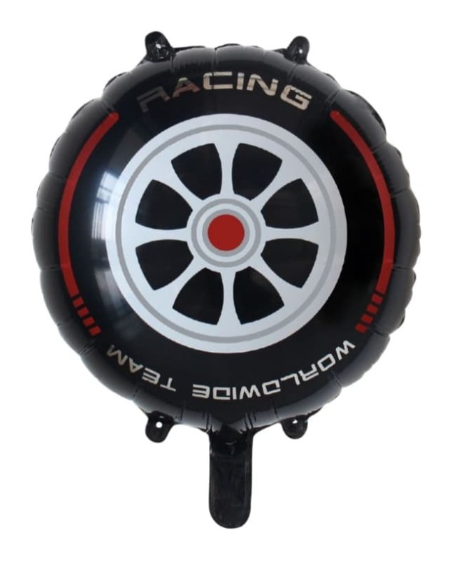 Balon foliowy Koło race wyścigi samochodowe ma rozmiar przed napompowaniem ok. 43 cm. Przeznaczony jest do napełnienia helem lub powietrzem. Unosi się po napełnieniu helem. Opakowanie zawiera 1 sztukę.