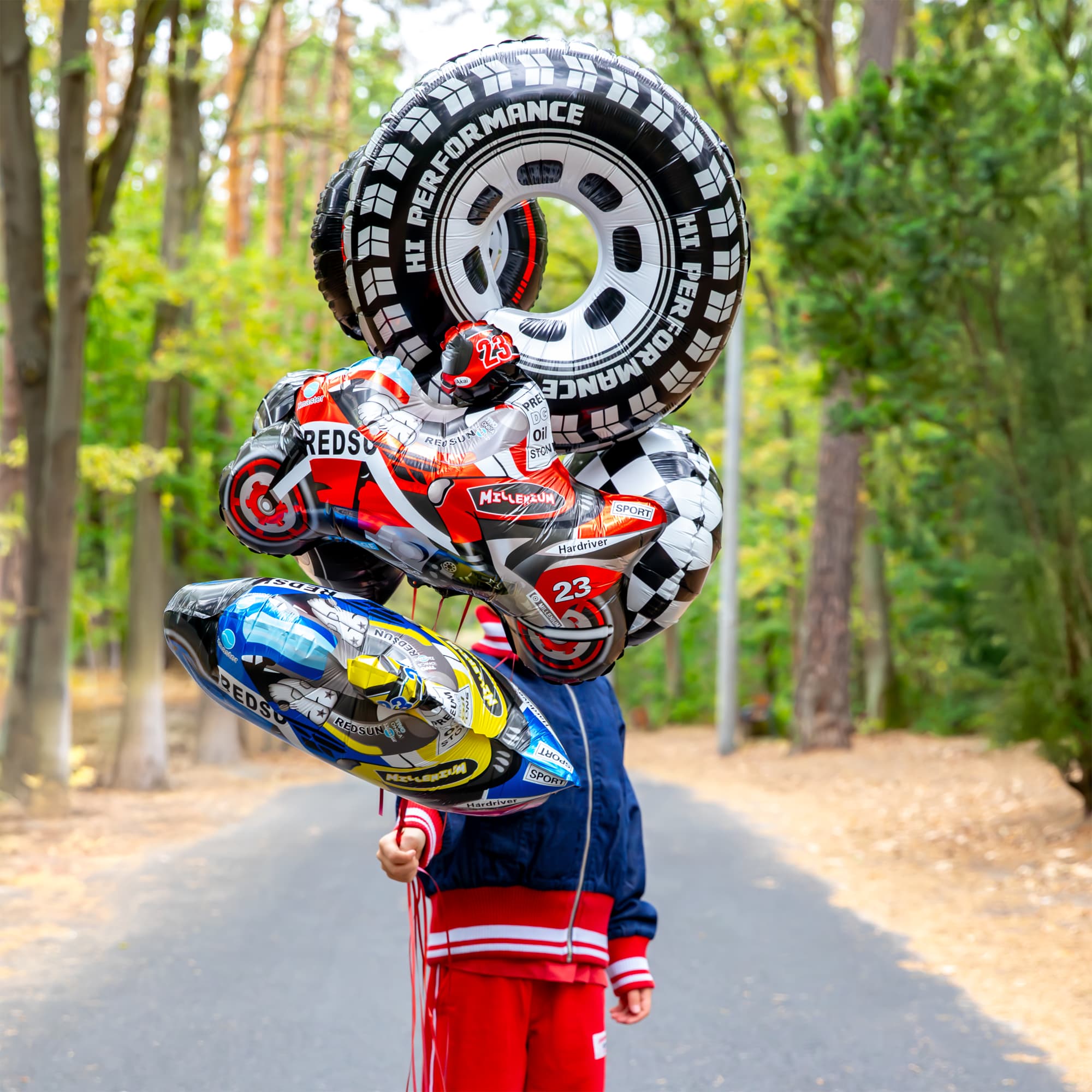 Duża, efektowna i gotowa na imprezowy wyścig – ta opona to dekoracyjny gigant! Idealna do ustawienia jako tło zdjęciowe lub centralny punkt tematycznej strefy. Pasuje do dekoracji rajdowych, motocyklowych i wszelkich imprez w klimacie „na wysokich obrotach”. Goście będą chcieli pozować z nią do zdjęć. To balon, który nadaje imprezie pełen gaz!