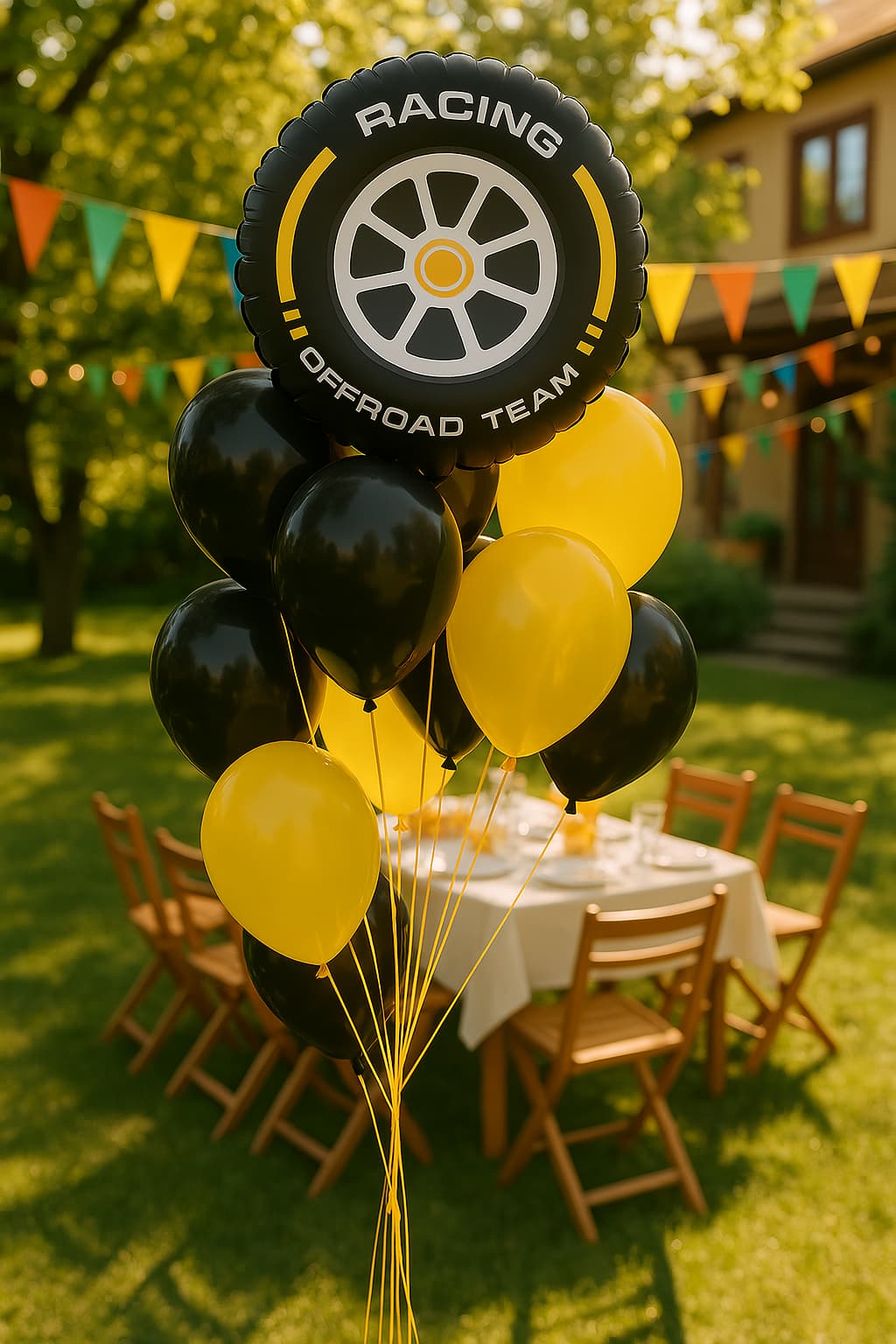 Balon, który wygląda, jakby dopiero co wrócił z toru wyścigowego – teraz w wersji żółtej! Świetny akcent kolorystyczny do motoryzacyjnych dekoracji. Sprawdzi się w duecie z czerwoną oponą dla efektu pełnego pit stopu. Nada się zarówno na dziecięce urodziny, jak i eventy motoryzacyjne dla dorosłych. W końcu żółte zawsze przyciąga uwagę!
