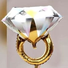 Złoty pierścionek- balon foliowy to oryginalny sposób na oświadczyny. Zaskocz swoją ukochaną i podaruj jej największy pierścionek, jaki widziała! To także wspaniała dekoracja na wieczór panieński.