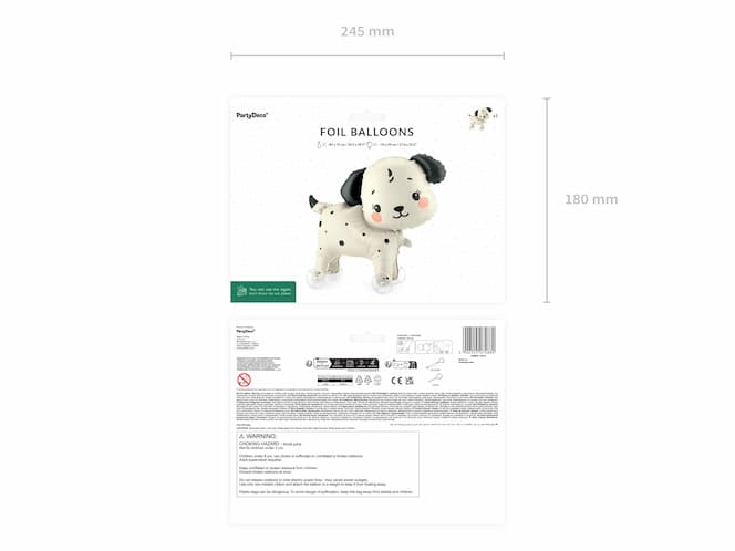 Balon foliowy Piesek na kółkach ma wymiary przed napompowaniem ok. 85 x 75 cm, a po napompowaniu ok. 70 x 59 cm. Przeznaczony jest do napompowania powietrzem. W zestawie znajduje się słomka.