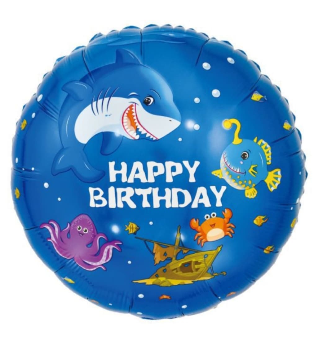 Balon foliowy z motywem podwodnego świata i napisem Happy Birthday ma wymiary ok. 45 cm przed napompowaniem. Można go napełnić helem lub powietrzem. Unosi się po napełnieniu helem. W opakowaniu znajduje się 1 sztuka.
