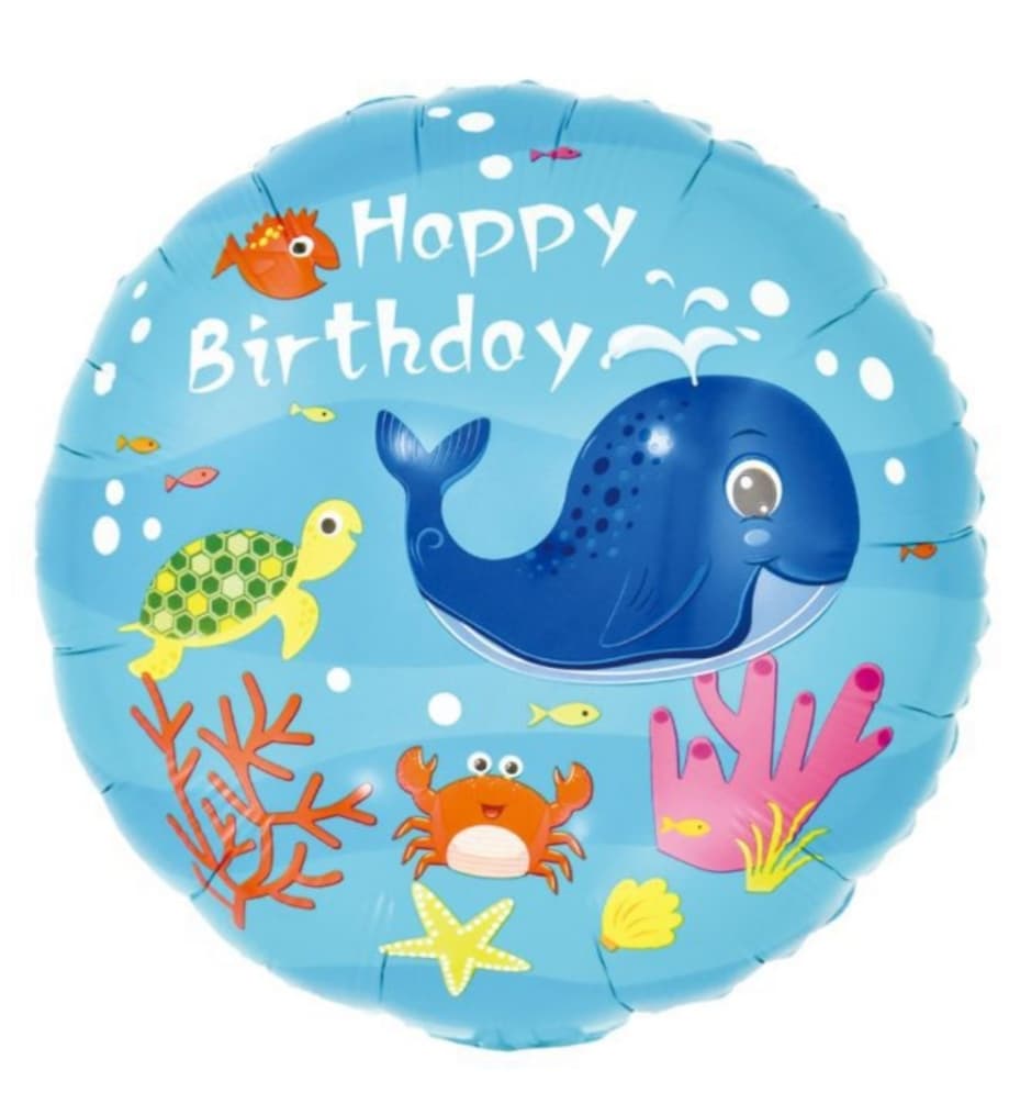 Balon foliowy z motywem podwodnego świata i napisem Happy Birthday ma wymiary ok. 45 cm przed napompowaniem. Można go napełnić helem lub powietrzem. Unosi się po napełnieniu helem. W opakowaniu znajduje się 1 sztuka.