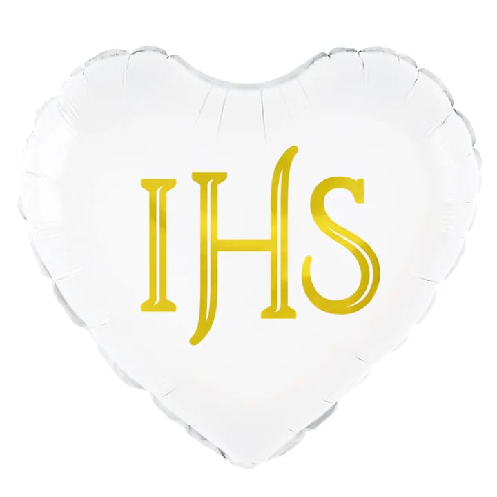 Podkreśl uroczysty charakter tego wyjątkowego dnia! Ten balon foliowy w kształcie serca z eleganckim, złotym napisem "IHS" to piękna i subtelna dekoracja na przyjęcie komunijne. Idealnie komponuje się z klasycznymi białymi i złotymi dekoracjami, dodając elegancji każdemu wnętrzu.