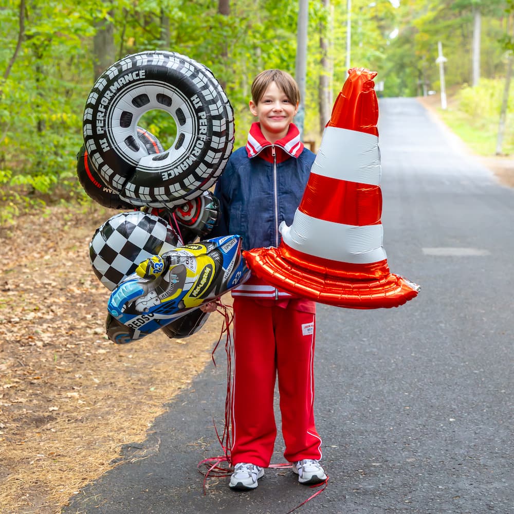 Uwaga, strefa zabawy! Balon pachołek drogowy stojący tworzy genialne tło do wyścigowych zdjęć i gier terenowych. Wysokość 88 cm sprawia, że wygląda jak prawdziwy rekwizyt z toru. Świetnie pasuje do motywów aut, motocykli i mechaników. Dodaj balon pachołek do dekoracji, a przyjęcie nabierze wyścigowego klimatu w sekundę.