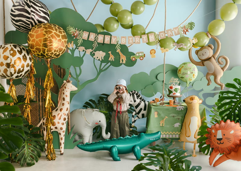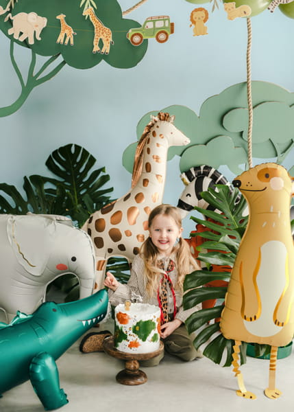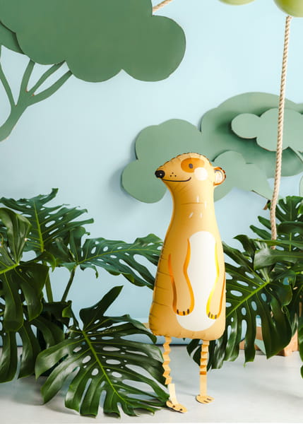 Wesoły motyw zwierzaka potrafi zrobić całą dekorację – balon foliowy surykatka świetnie sprawdza się jako uroczy akcent na imprezę safari. Smukły kształt wygląda super przy stole, w kąciku zdjęć albo jako element kompozycji balonowej z zielenią i beżami. Taki dodatek od razu przyciąga uwagę dzieci i buduje temat przyjęcia. To trafiony wybór na dekoracje safari oraz urodziny w stylu zwierzątek.