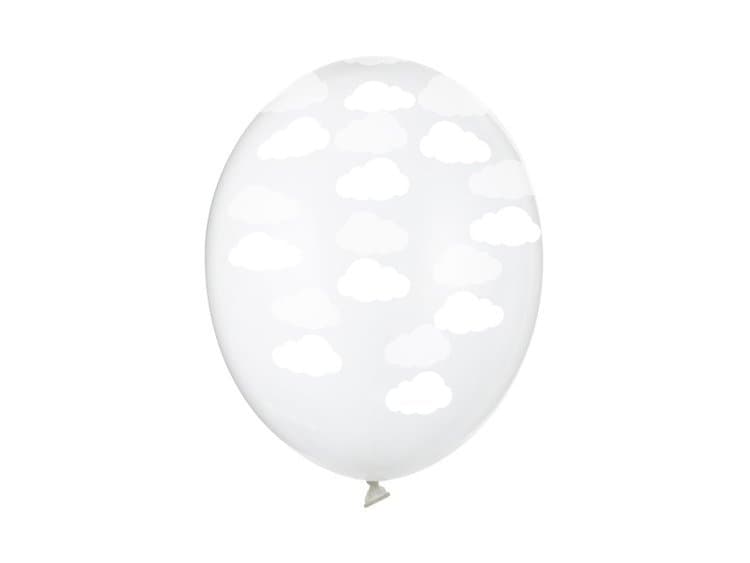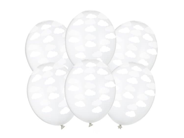 Balony przezroczyste w białe chmurki, 6 szt.