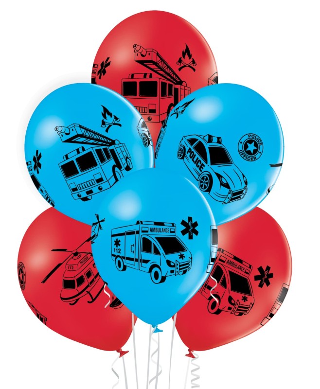 Balony lateksowe pojazdy uprzywilejowane mają czterostronny nadruk. Na balonach znajduje się karetka pogotowia, helikopter ratunkowy, straż pożarna i policja. Wspaniale wyglądają zarówno jako dekoracja na przyjęciu z motywem samochodów lub policyjnym, jak i w bukiecie balonowym dla małego miłośnika takich pojazdów.