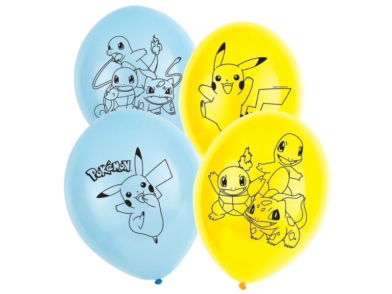 Balony lateksowe Pokemon mają średnicę ok. 28 cm. W opakowaniu znajduje się 6 sztuk balonów z nadrukiem pokemonów — Pikachu, Bulbazaur, Squirtle i Charmander. Można je napełnić helem lub powietrzem. Unoszą się po napełnieniu helem.