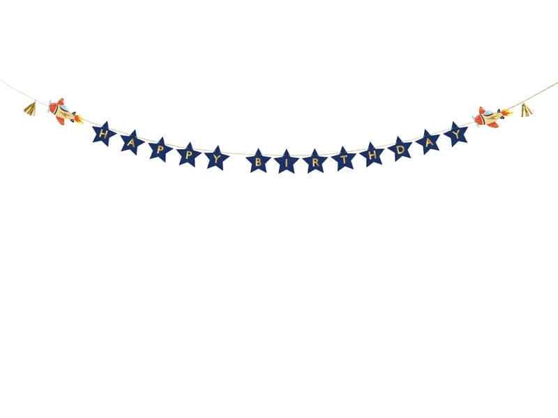 Ten baner to perfekcyjna dekoracja na każde odlotowe urodziny. Granatowe gwiazdki ze złotymi elementami świetnie współgrają ze sobą, a delikatna dekoracja w kształcie samolotu będzie symbolizować ten wyjątkowy dzień małego lotnika.