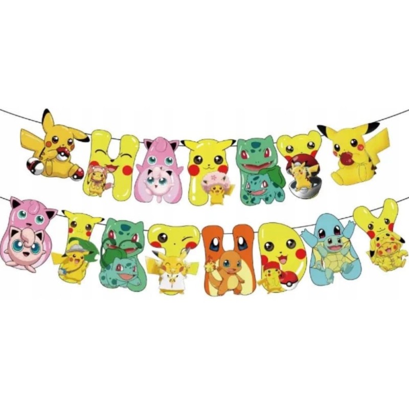 Baner urodzinowy Pokemon z napisem Happy Birthday ma długość ok. 230 cm. W komplecie znajduje się tasiemka. Produkt należy złożyć samodzielnie. W opakowaniu znajduje się 1 sztuka.