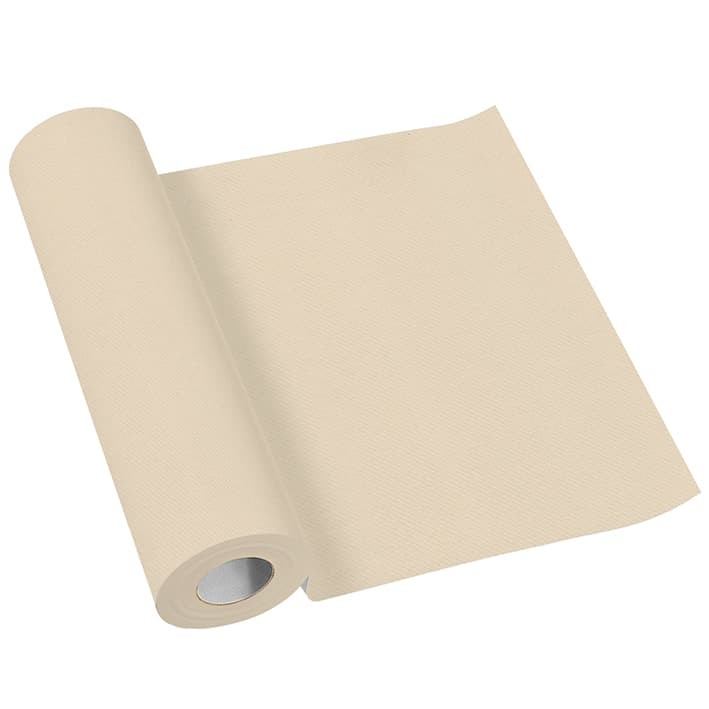 Beżowy bieżnik papierowy Airlaid ma szerokość ok. 40 cm oraz długość ok. 24 m. Posiada perforowania ułatwiające ucinanie bieżnika (20 szt. x 120 cm). Opakowanie zawiera 1 sztukę.