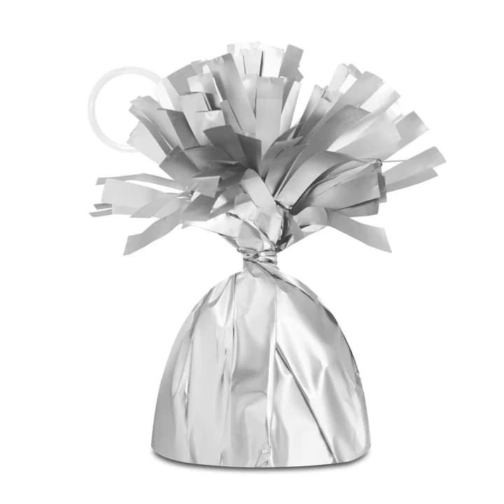 Ciężarek do balonów w kolorze matowym srebrnym waży ok. 145 g.