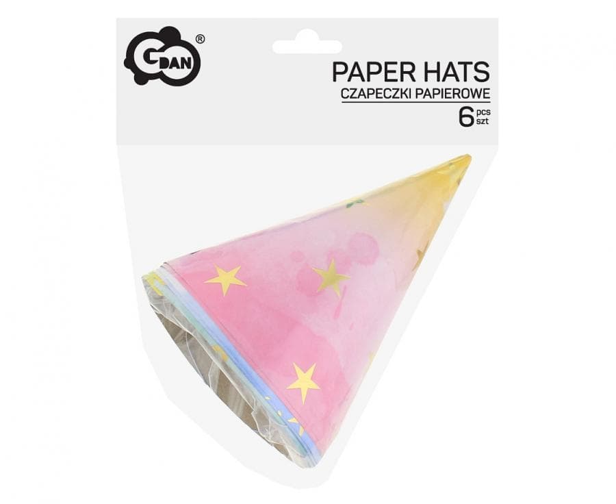 Czapeczki papierowe pastelowe kolorowe akwarele w gwiazdki, 6 szt.