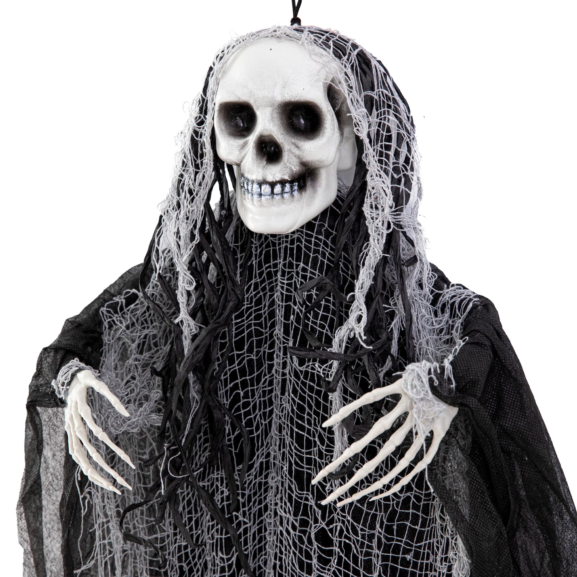 Dekoracja na Halloween wiszący Szkielet Kostucha ma rozmiar ok. 91 cm.