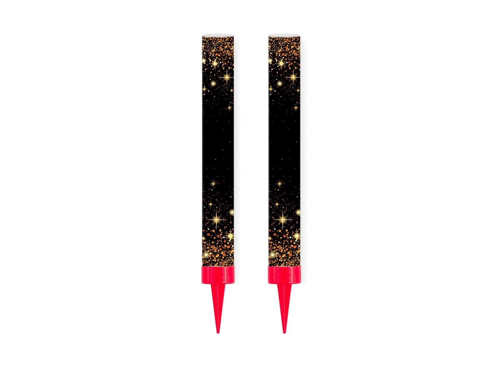 Fontanny race na tort z motywem sparkling mają długość ok. 12 cm. Każda fontanna posiada plastikową końcówkę, dzięki której utrzymuje się w pionie na torcie. Czas palenia to ok. 45 sekund. Produkt nieprzeznaczony do użytku przez osoby poniżej 18 roku życia.