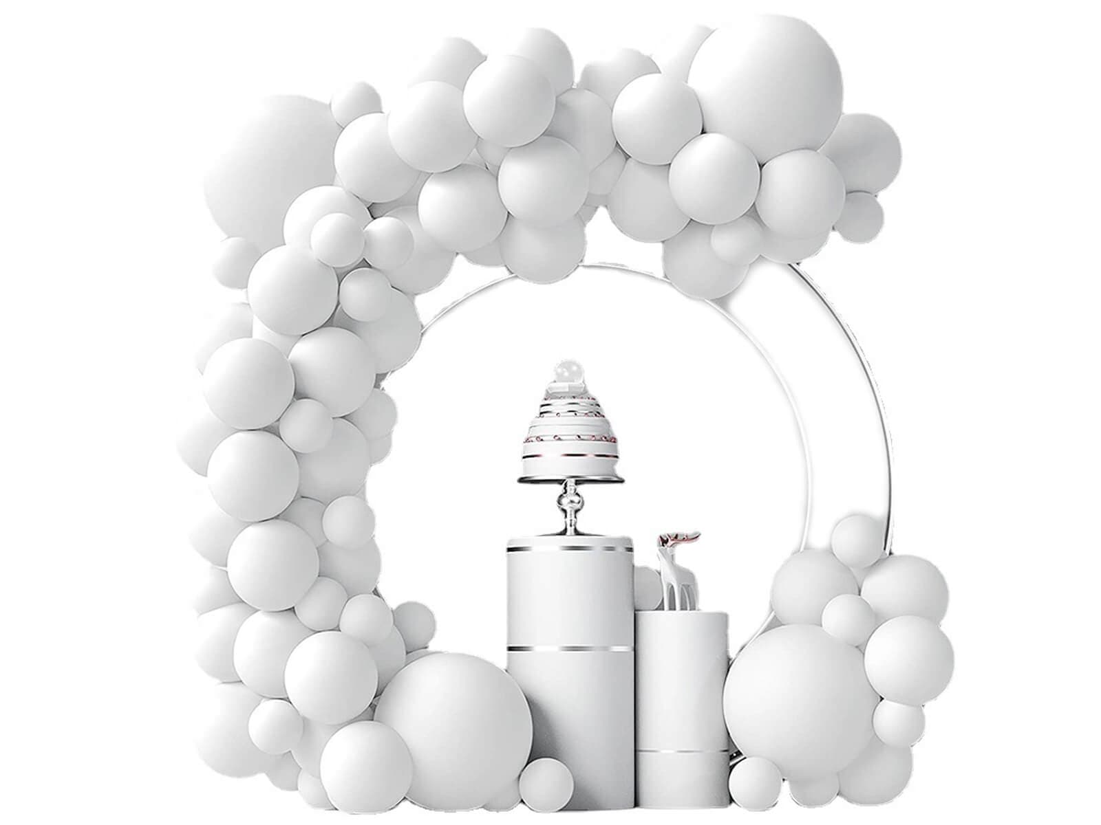 Girlanda balonowa w kolorze białym posiada w komplecie: