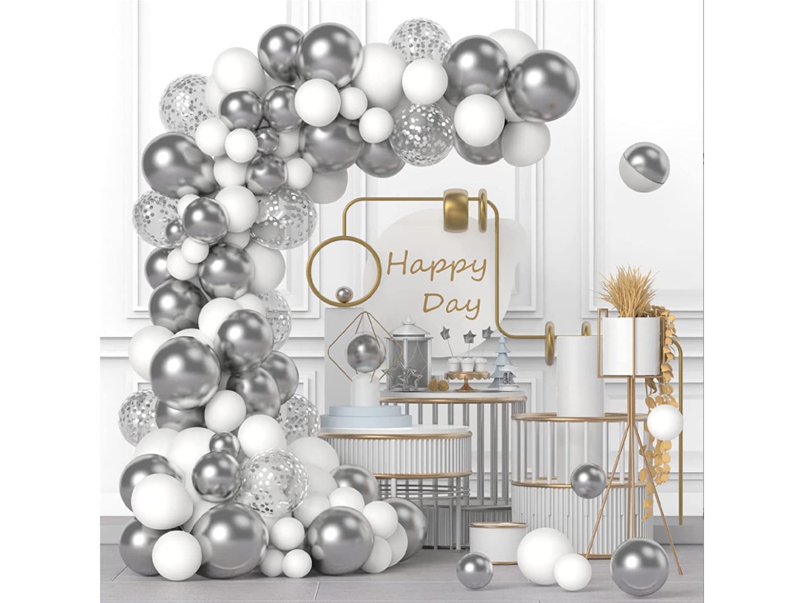 Girlanda balonowa biało-srebrna konfetti, 102 szt.