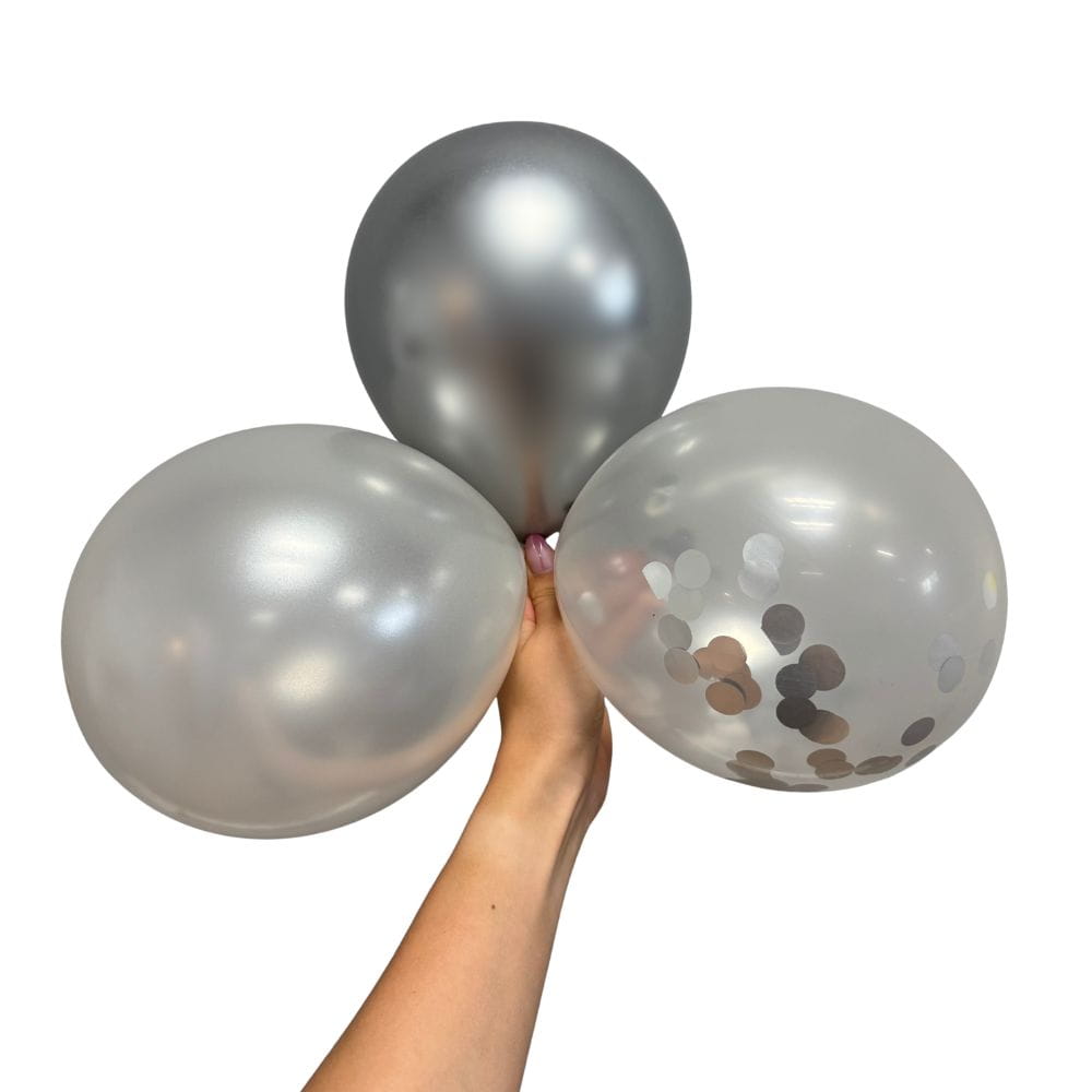 Rozświetl każde przyjęcie, łącząc ponadczasową biel z chłodnym, metalicznym urokiem srebra. Efekt połyskującego konfetti w balonach stworzy niesamowity efekt wizualny, który zachwyci wszystkich uczestników. Uzyskaj wrażenie elegancji i nowoczesności, czyniąc tę srebrno białą girlandę balonową centralnym punktem całej dekoracji!