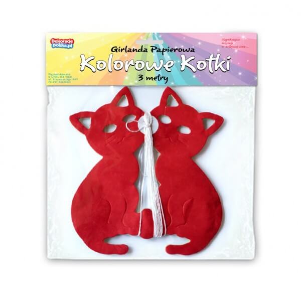 Girlanda bibułowa kolorowe kotki to wspaniała dekoracja na dziecięce przyjęcie. Wspaniale sprawdzi się na karnawałowych imprezach w przedszkolach i żłobkach.