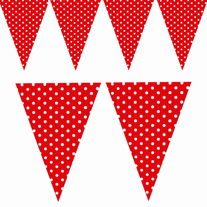 Girlanda czerwona w białe kropki ma długość ok. 2 metry plus wolne końce do zawieszenia. Jedna flaga ma wysokość ok. 27,5 cm, szerokość ok. 18,5 cm. Girlanda pin up składa się z 10 flag.