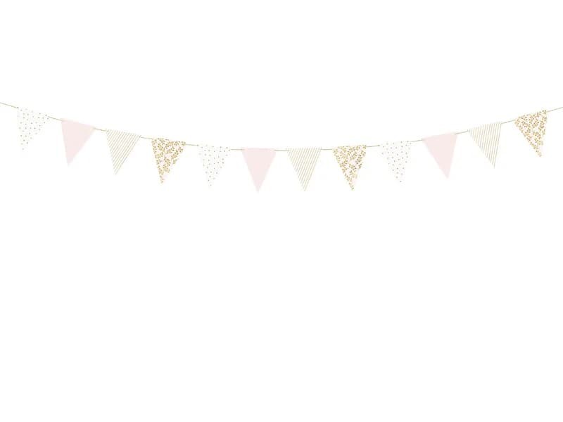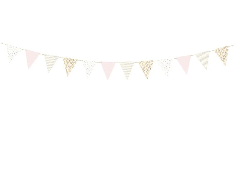 Girlanda flagietki pastelowa biała różowa złota, 210 cm