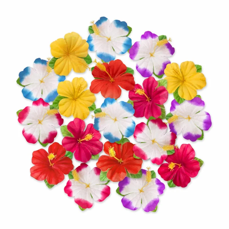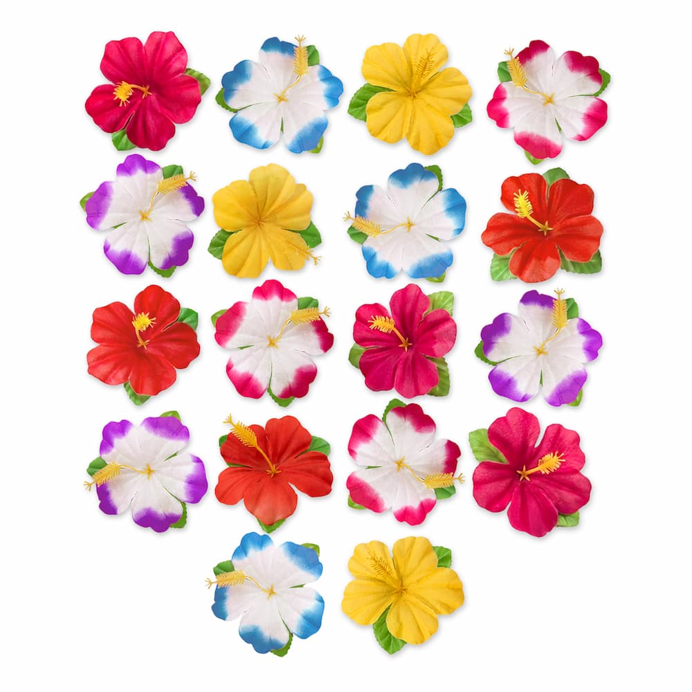 Hawajskie kwiaty dekoracyjne mają szerokość ok. 11 cm. W opakowaniu znajduje się 18 sztuk.