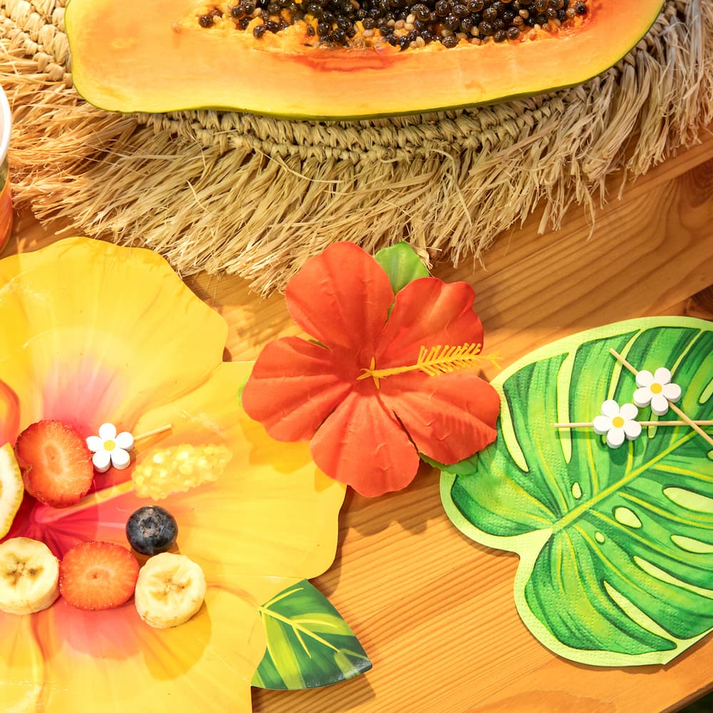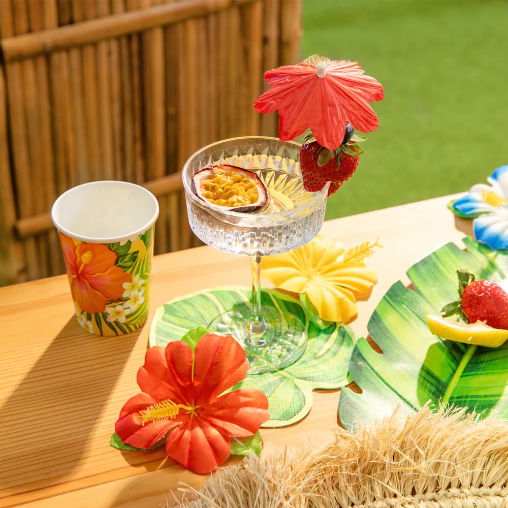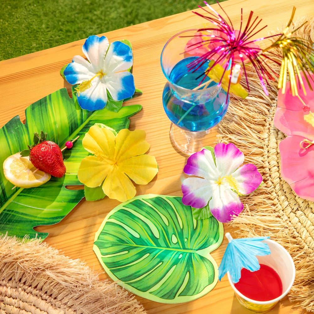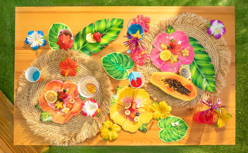 Kolorowe konfetti hawajskie kwiaty to prosty sposób, by wprowadzić tropikalny klimat na każdą imprezę. Rozsypane na stole tworzą efektowną i lekką dekorację, która od razu przyciąga wzrok. Idealne na imprezy hawajskie, urodziny i letnie przyjęcia. Dodają aranżacji energii i wakacyjnego luzu. Jeśli chcesz szybko odmienić wygląd stołu, to dekoracyjne konfetti zrobi świetną robotę.