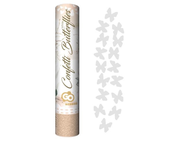Konfetti pneumatyczne motylki papierowe białe tuba 30 cm