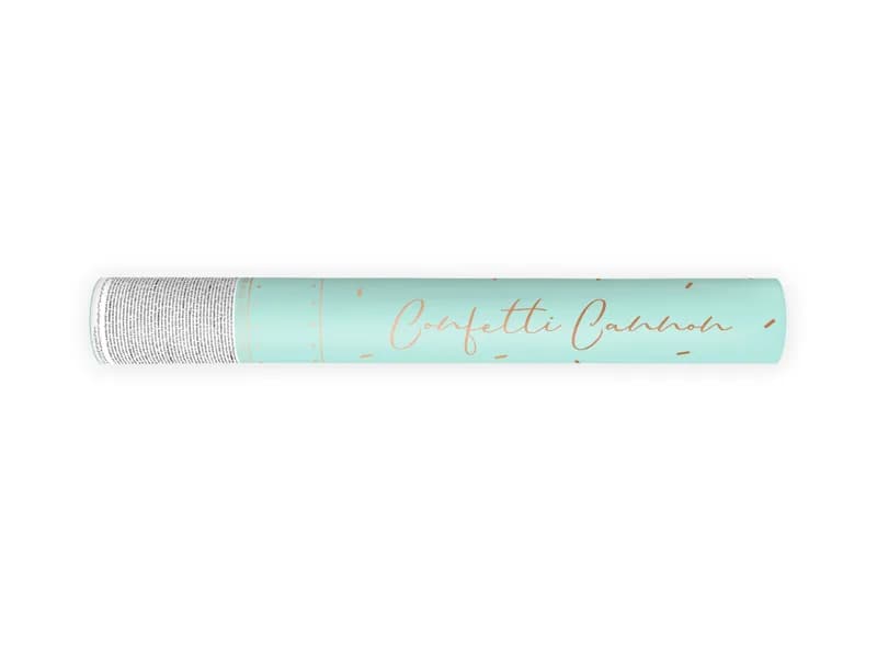 Pneumatyczne konfetti z papierowymi paskami w kolorze rose gold ma długość ok. 40 cm. Po przekręceniu z tuby wylatuje bibułowe konfetti. Konfetti pneumatyczne nie zawiera ładunków pirotechnicznych. Wyrzut następuje za pomocą sprężonego powietrza. Produkt przeznaczony wyłącznie dla osób dorosłych