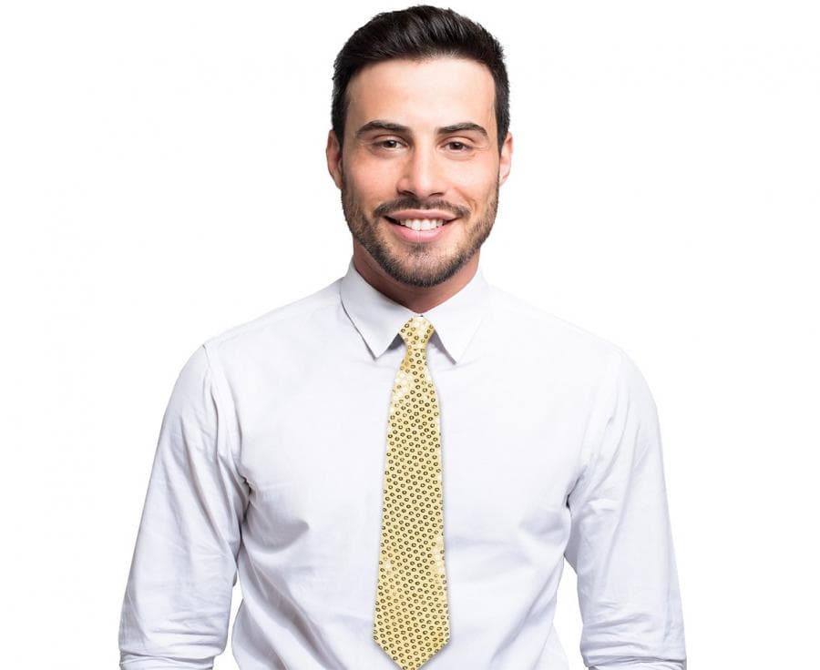 Rozbłyśnij złotym blaskiem, który z miejsca przywołuje skojarzenia z hollywoodzkim przepychem. Ten cekinowy złoty krawat to prawdziwy bohater imprezowych wieczorów, wnoszący królewski klimat na parkiet. Daj się ponieść fali zachwytów i baw się jak nigdy dotąd!