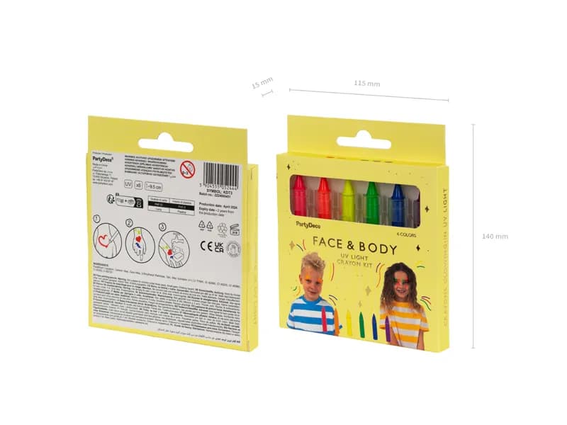 Kredki UV do malowania twarzy to idealny dodatek na imprezy, które ożywają po zmroku w świetle lampy UV. Twórz kreatywne wzory na twarzy i ciele, które będą świecić w ultrafiolecie, robiąc niesamowite wrażenie. Doskonałe na festiwale, dyskoteki czy przyjęcia tematyczne – pozwól sobie na odrobinę szaleństwa!