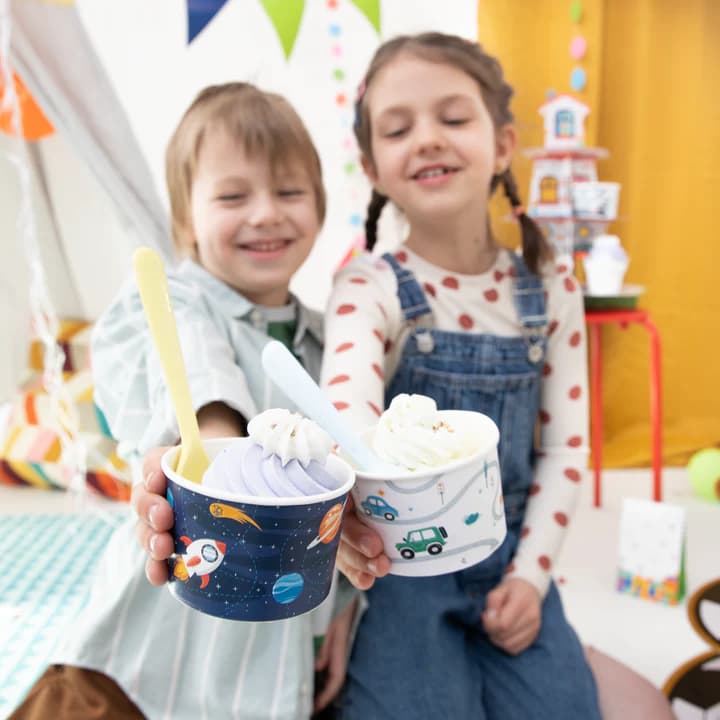 Kubeczki na lody z kosmicznym motywem podbiją serca wszystkich miłośników astronomii i galaktycznych przestrzeni. Papierowe kubki będą idealnym rozwiązaniem na zaserwowanie lodów i przekąsek na urodzinach, przyjęciu w ogrodzie czy grillu. Ich kolorystyka nawiązująca do kosmosu prezentuje się w oryginalny sposób, który z pewnością wprawi w zachwyt wszystkich gości.