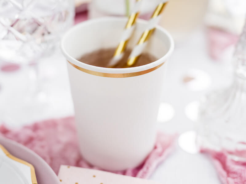 Eleganckie, białe kubeczki papierowe świetnie sprawdzą się na przyjęciach z okazji chrzcin, komunii czy weselu. Będą także wspaniałą zastawą na urodzinach, szczególnie gdy chcemy utrzymać subtelny, ale luksusowy klimat.