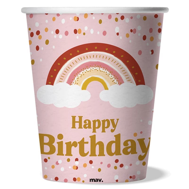 Kubeczki papierowe Boho Happy Birthday, 8 szt.