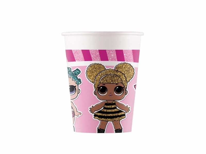 W opakowaniu znajduje się 8 sztuk kubeczków papierowych z laleczkami LOL o pojemności ok. 200 ml.