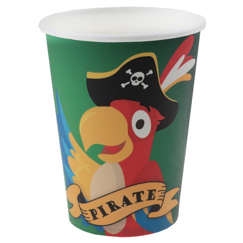 Kubeczki papierowe Pirackie Przygody ma pojemność 250 ml. W opakowaniu znajduje się 10 sztuk.