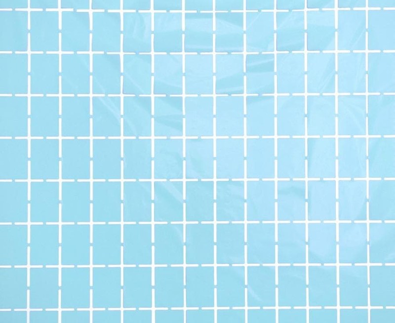Kurtyna dekoracyjna kwadraty w kolorze jasnoniebieskim ma szerokość 100 cm i długość 200 cm.