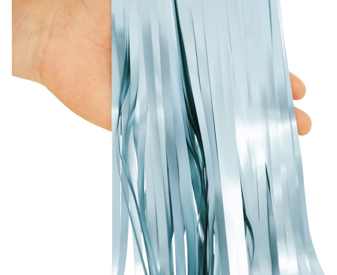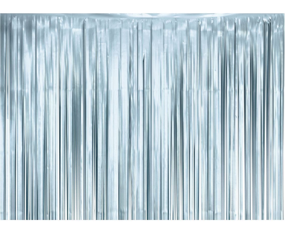 Kurtyna imprezowa w kolorze jasnoniebieskim o matowym wykończeniu ma szerokość 100 cm i długość 200 cm. Wykonana jest z folii.