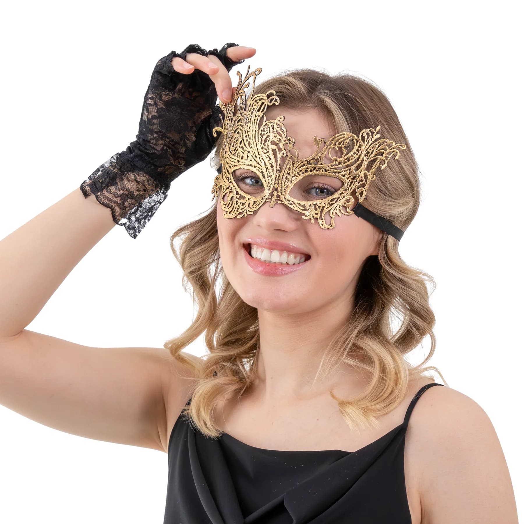 Maska karnawałowa ażurowa koronkowa złota to stylowy element, który nadaje każdej stylizacji luksusowego i efektownego wyglądu. Złoty kolor sprawia, że maska doskonale wyróżnia się podczas imprez i przyciąga uwagę gości. Jest idealnym dodatkiem na bal maskowy, karnawał oraz imprezy tematyczne. Świetnie komponuje się z eleganckimi kreacjami, podkreślając charakter strojów karnawałowych. To niezastąpiony produkt w kategorii maski karnawałowe i dekoracje imprezowe.