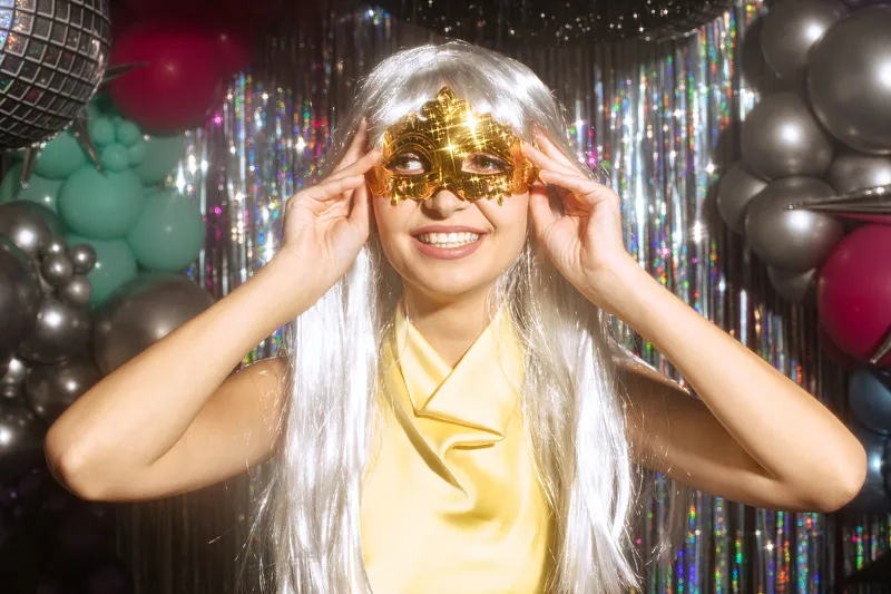 Błysk w stylu premium – złota maska wenecka pasuje zarówno do stylizacji damskiej, jak i męskiej. Ciemne tonowanie dodaje głębi, dzięki czemu całość wygląda luksusowo i tajemniczo. To idealny wybór na bal maskowy, studniówkę i elegancki sylwester. Świetnie komponuje się z czernią, bordo i granatem, tworząc scenę gotową do zdjęć. Sięgnij po tę maskę karnawałową złotą, by wejść z klasą i zostawić po sobie olśniewające wrażenie.