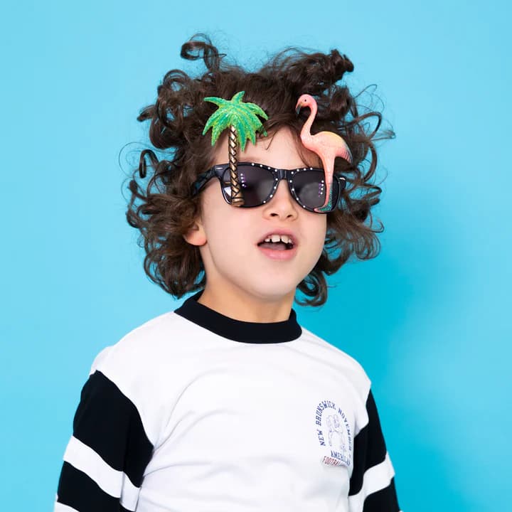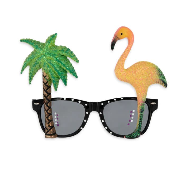 Ten niezwykły dodatek łączy klasyczny urok ciemnych okularów przeciwsłonecznych z egzotyczną wyrazistością brokatowego flaminga i palm. Owe okulary to więcej niż wyjątkowy gadżet – to niezwykły sposób na wyrażenie siebie i wprawienie wszystkich wokół w tropikalny nastrój. Idealne na letnie festiwale oraz imprezy tematyczne w stylu hawaii.