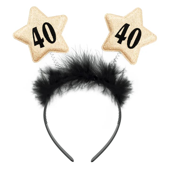 Opaska na głowę na 40 urodziny to idealny sposób, aby dodać blasku i odrobiny zabawy do jubileuszowego świętowania. Złote gwiazdki z liczbą "40" dynamicznie poruszają się na sprężynkach, przyciągając uwagę i tworząc radosny, imprezowy nastrój. To świetny gadżet, który sprawi, że poczujesz się wyjątkowo, celebrując swoje 40. urodziny w pełnym blasku i z uśmiechem na twarzy.