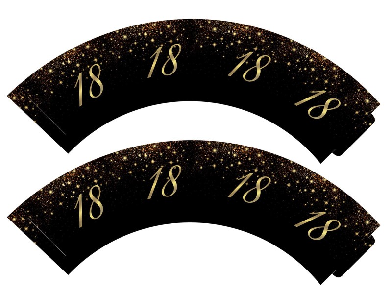 Świętuj 18. urodziny z wyjątkowym stylem dzięki naszym papilotkom w kolorze czarnym z efektem sparkling. Złote iskierki i elegancka liczba "18" dodają blasku każdej babeczce, sprawiając, że stół prezentuje się luksusowo i nowocześnie. Idealne na uroczyste przyjęcia. Te papilotki sprawią, że Twoje wypieki będą jeszcze bardziej apetyczne i stylowe.