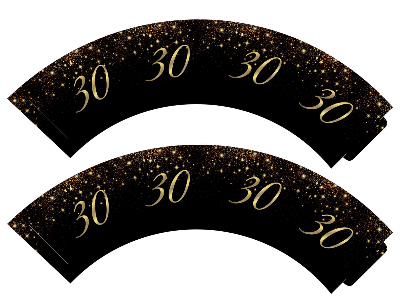 Trzydzieste urodziny to wyjątkowy moment, który zasługuje na specjalną oprawę. Nasze czarne papilotki papierowe z efektem sparkling i złotą liczbą "30" dodadzą blasku każdej babeczce. Stylowe i eleganckie, doskonale komponują się z każdym wypiekiem, tworząc niepowtarzalną atmosferę podczas tego wyjątkowego święta.