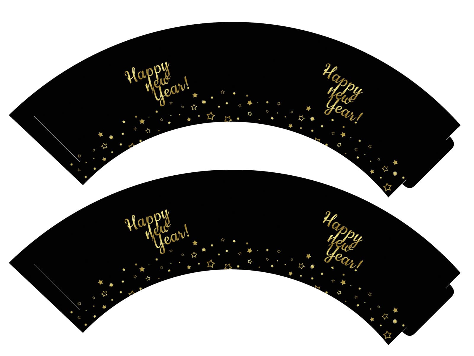 Czarne papilotki sylwestrowe urozmaicą Twoje babeczki i sprawią, że będą to prawdziwie sylwestrowe wypieki. Na papilotkach nadrukowany jest złoty napis Happy New Year oraz złote gwiazdki.