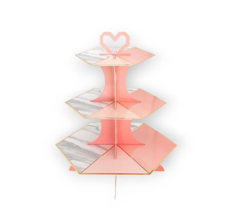 Patera na babeczki ciasto różowa ze wzorem marmuru 3-piętrowa