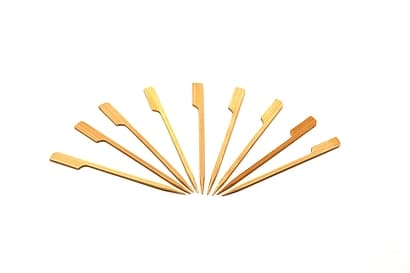 Bambusowe patyczki do przekąsek mają długość ok. 12 cm. W opakowaniu znajduje się 100 sztuk. Są ekologiczne, wytrzymałe i dopuszczone do kontaktu z żywnością.